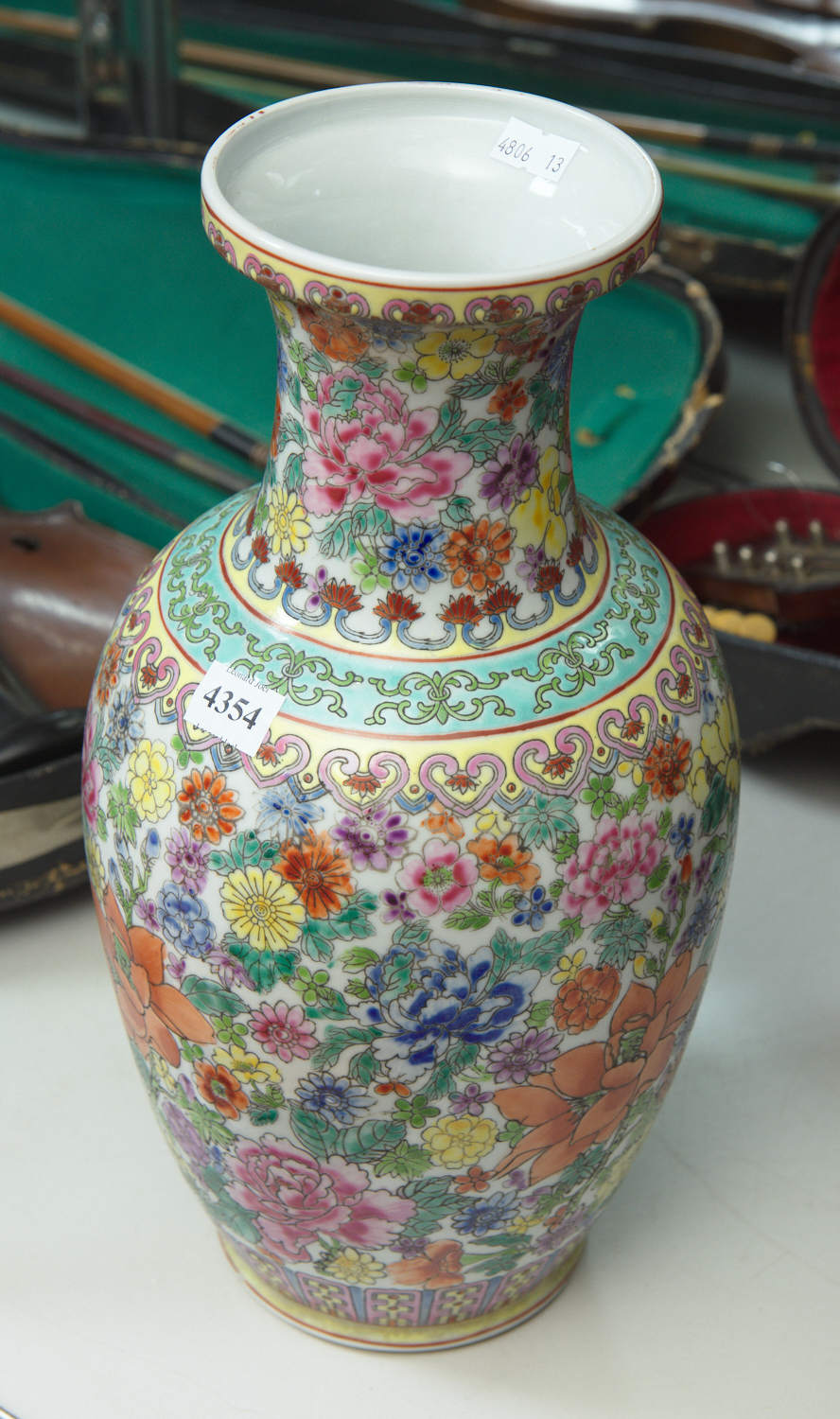 HIROE SWEN, RECTANGULAR VASE, STEEL MATT GLAZE AND OVERLAY DECORATIONS, H.20CM W.29CM