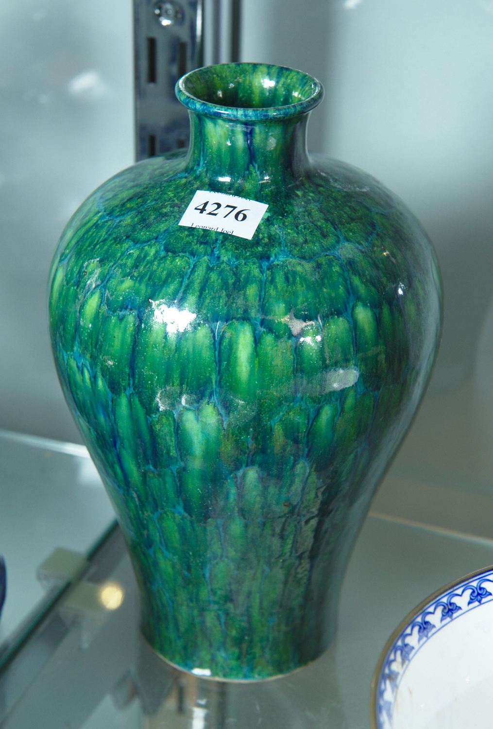 HIROE SWEN, RECTANGULAR VASE, STEEL MATT GLAZE AND OVERLAY DECORATIONS, H.20CM W.29CM