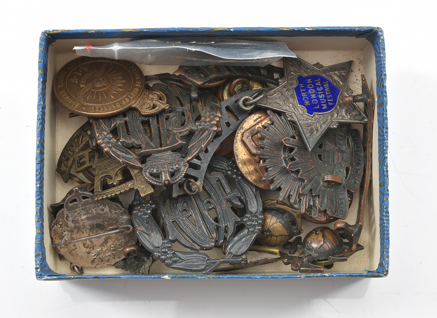 A COLLECTION OF MILITARY BADGES AND BUTTONS AND A STG SILVER SWEETHEART BROOCH