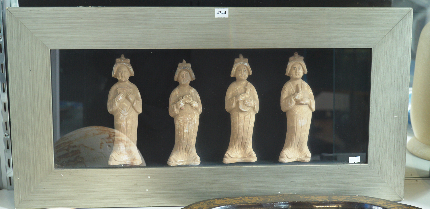 A FRAMED TERRACOTTA FIGURE DISPLAY
