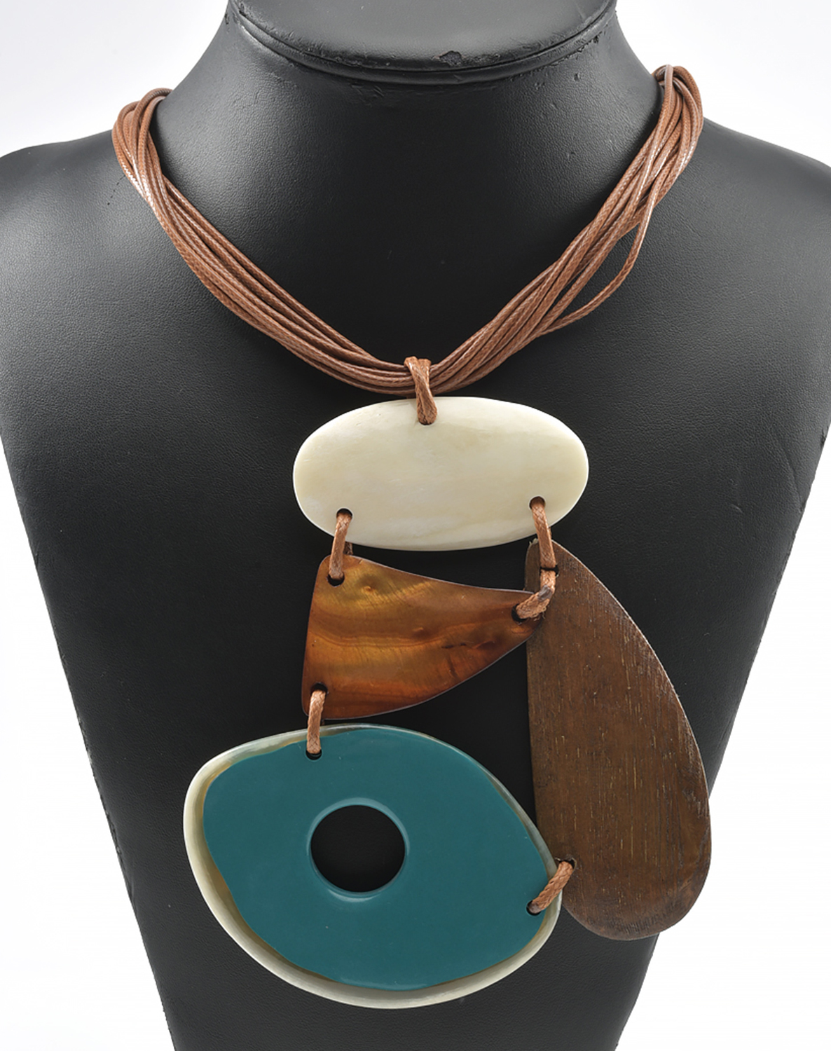 A DESIGNER NECKLACE WITH GEOMETRICAL WOODEN MOTIFS