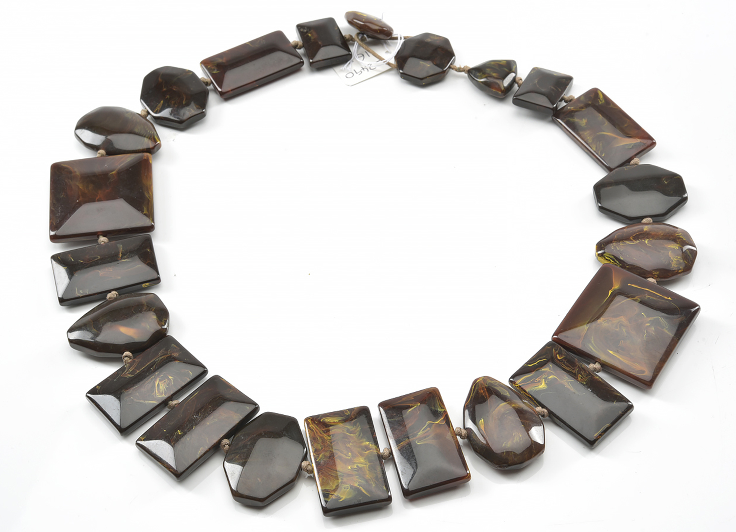 A VINTAGE LONG NECKLACE WITH BROWN RESIN MOTIFS