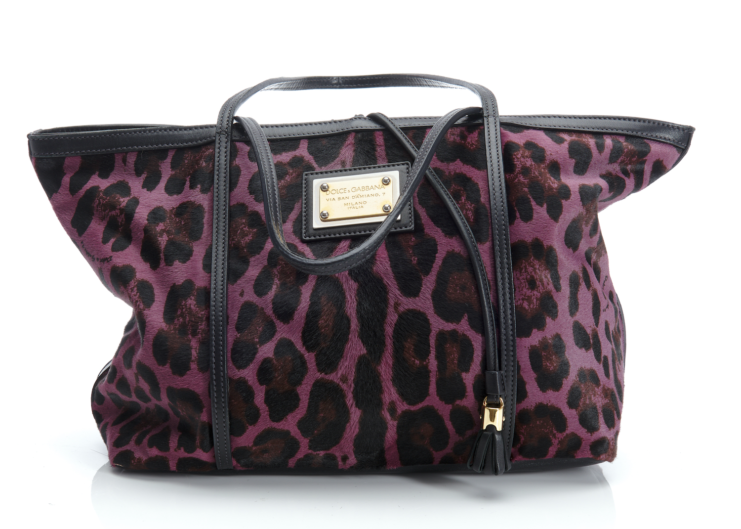 Styled in aubergine ocelot print pony skin with black leather detail & gold metal hardware, 32 x 26 x 130cm.