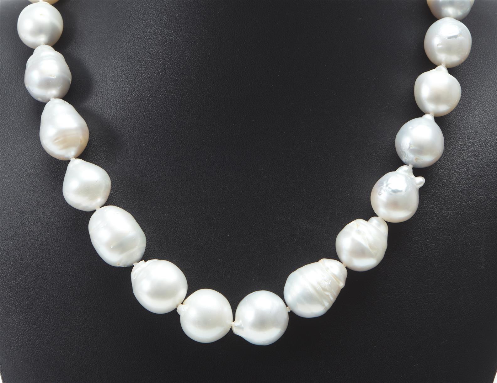 A SOUTH SEA PEARL, MORGANITE AND DIAMOND NECKLACE IN 18CT WHITE GOLD, FEATURING A CUSHION CUT MORGANITE OF 49.44CTS, THE ROUND PEARL...