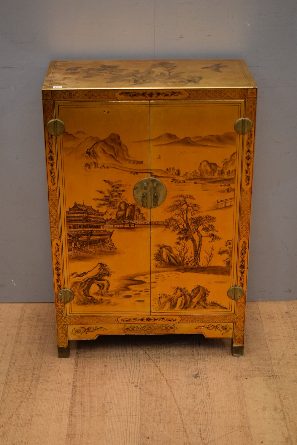 A CHINESE GOLD LACQUERED CABINET (92H X 61W X 31D CM)