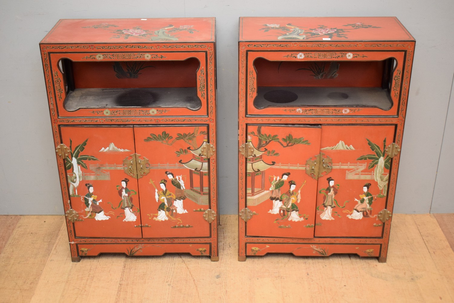 A PAIR OF CHINESE LACQUERED CABINETS (95H X 61W X 31D CM)