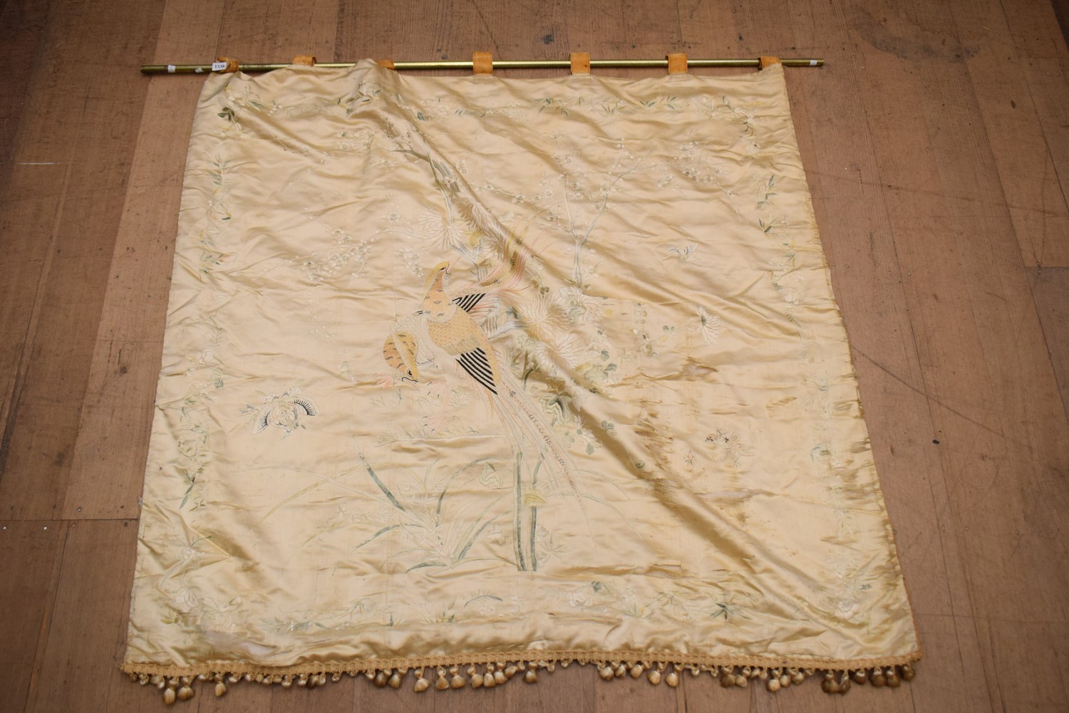 A SILK EMBRIODERY WALL HANGING (DAMAGED) (109H X 107W CM)