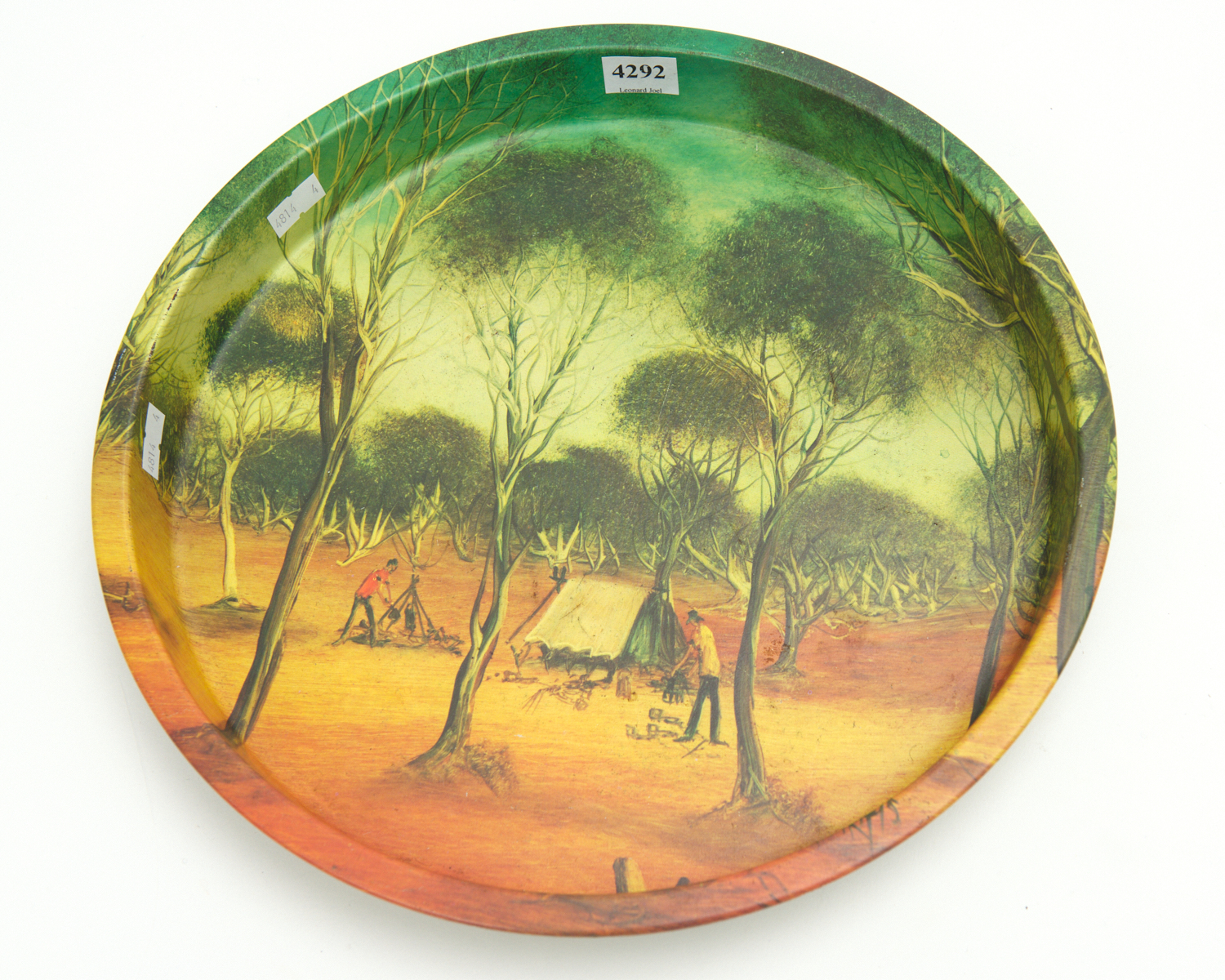 A VINTAGE TRAY, PRO HART OUTBACK SCENE