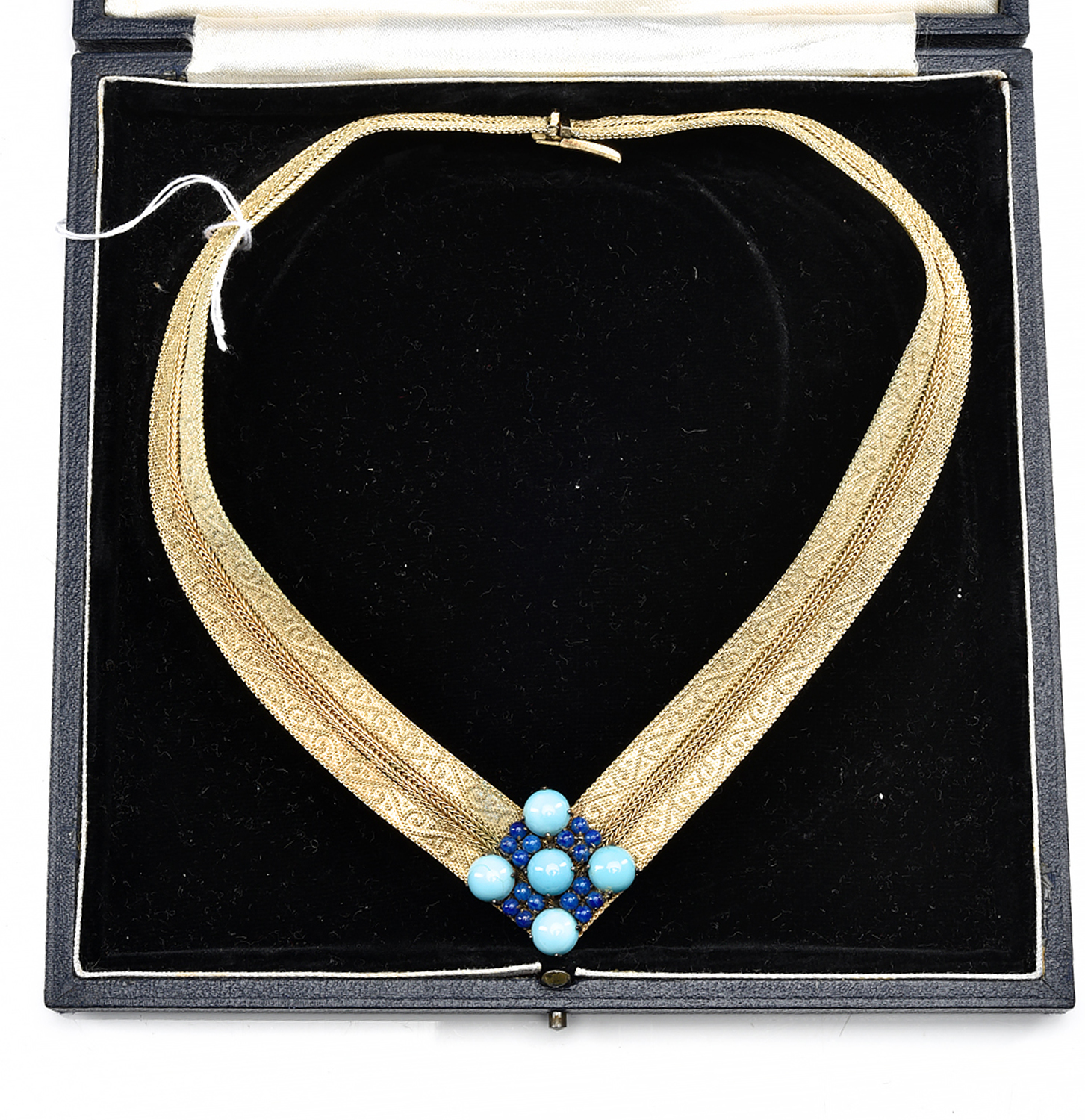 A VINTAGE COSTUME NECKLACE, RETAILED BY FORTNUM & MASON, LONDON, IN A VINTAGE MAPPIN & WEBB BOX
