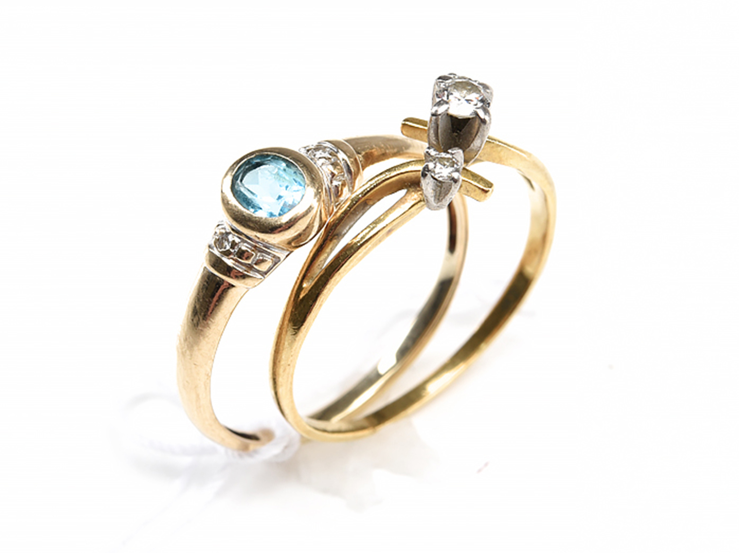 A DIAMOND RING IN 9CT GOLD, TOGETHER WITH A TOPAZ AND DIAMOND RING IN 9CT GOLD, SIZE P, 3.3GMS (A/F)