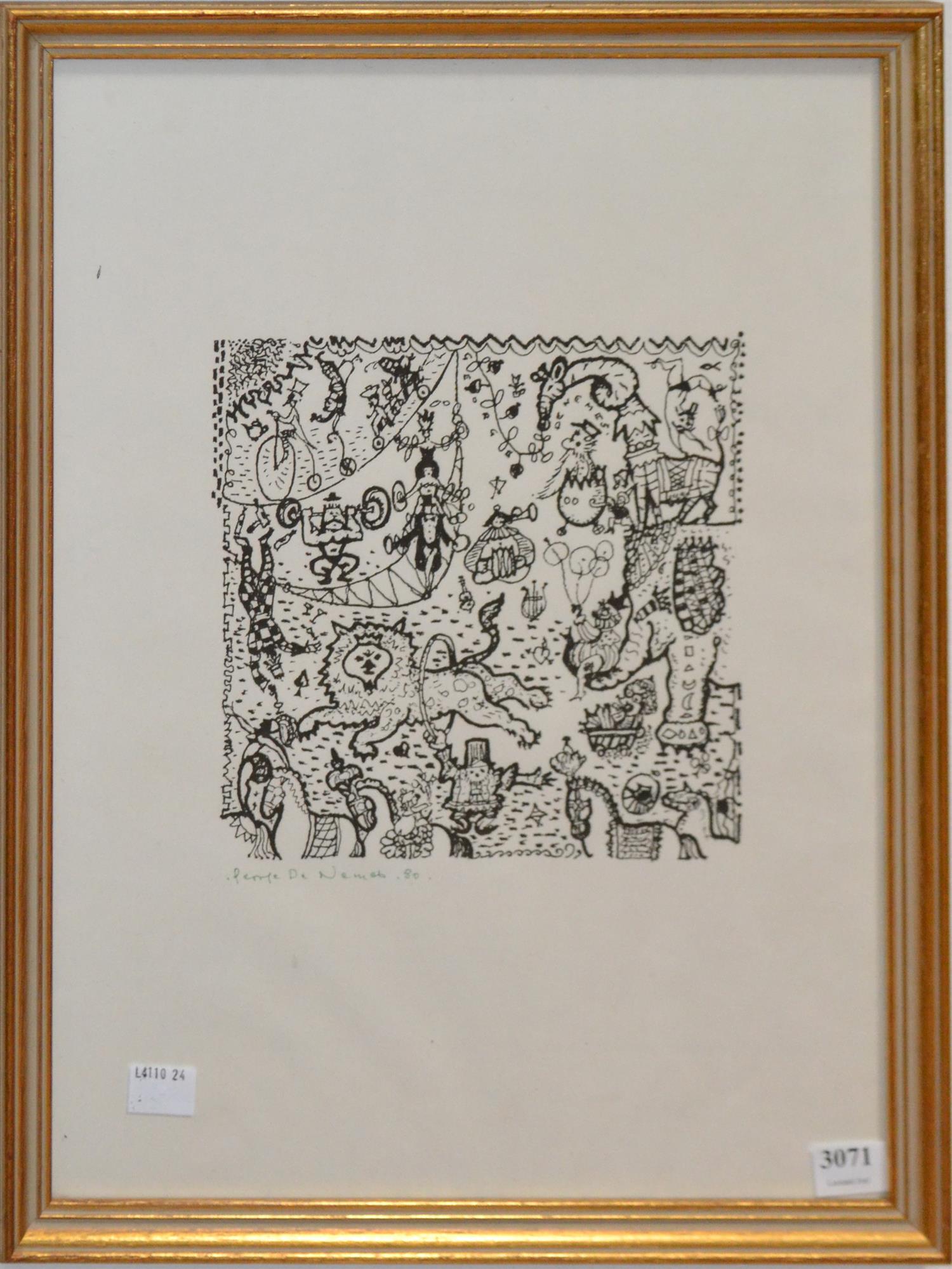 GEORGE DE NEMES, UNTITLED 1980, LITHOGRAPH, 19 X 18CM, FRAME SIZE: 43 X 33CM, CONDITION: VERY GOOD