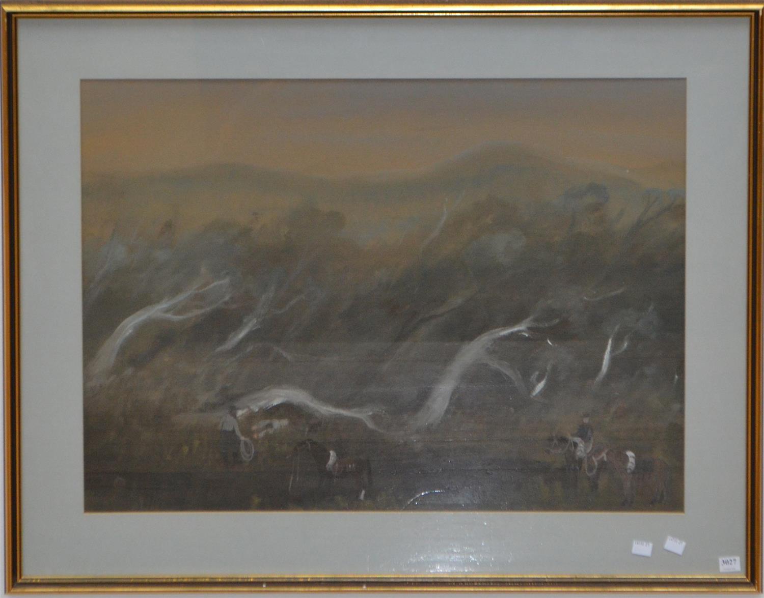 MARGOT KNOX, LANDSCAPE WITH FIGURES, WATERCOLOUR AND GOUACHE, 52 X 73CM, FRAME SIZE: 71.5 X 92CM, CONDITION: VERY GOOD NO FAULTS