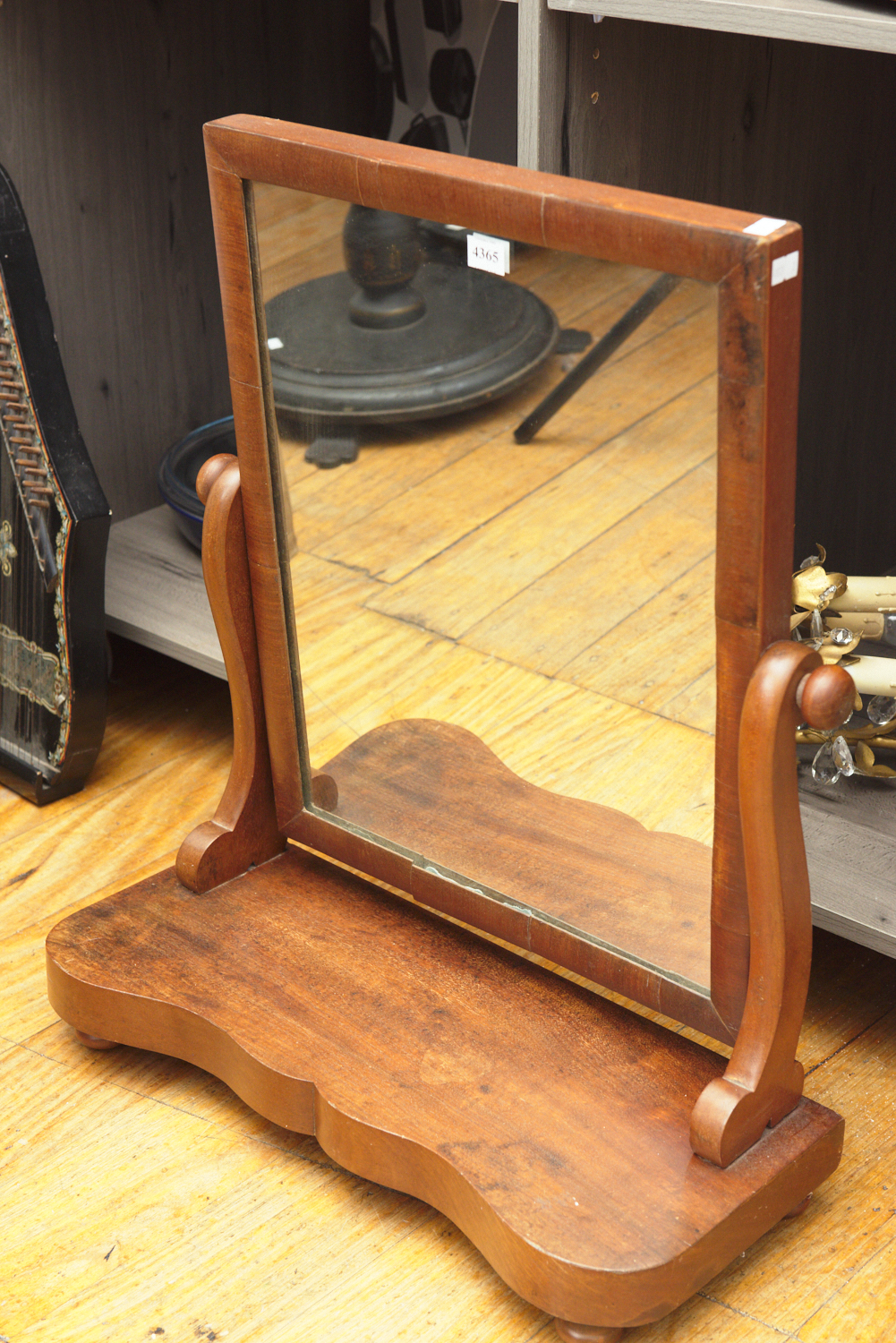 A MAHOGANY VENEERED VANITY MIRROR, 60 CM HIGH, 50.5 CM WIDE, 20.5 CM DEPTH, LEONARD JOEL DELIVERY SIZE: SMALL