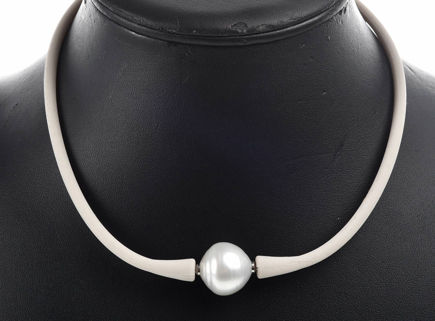 A SOUTH SEA PEARL AND NEOPRENE NECKLACE IN WHITE