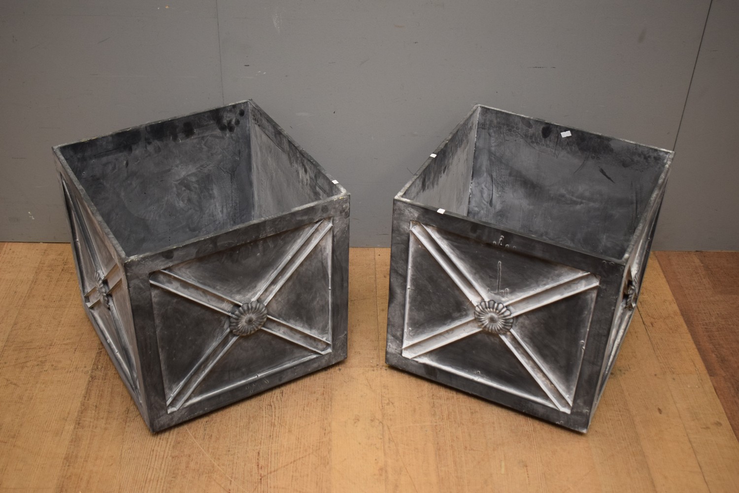 A PAIR OF METAL PLANTERS WITH PANEL DETAIL (45H X 45W X 45D CM)
