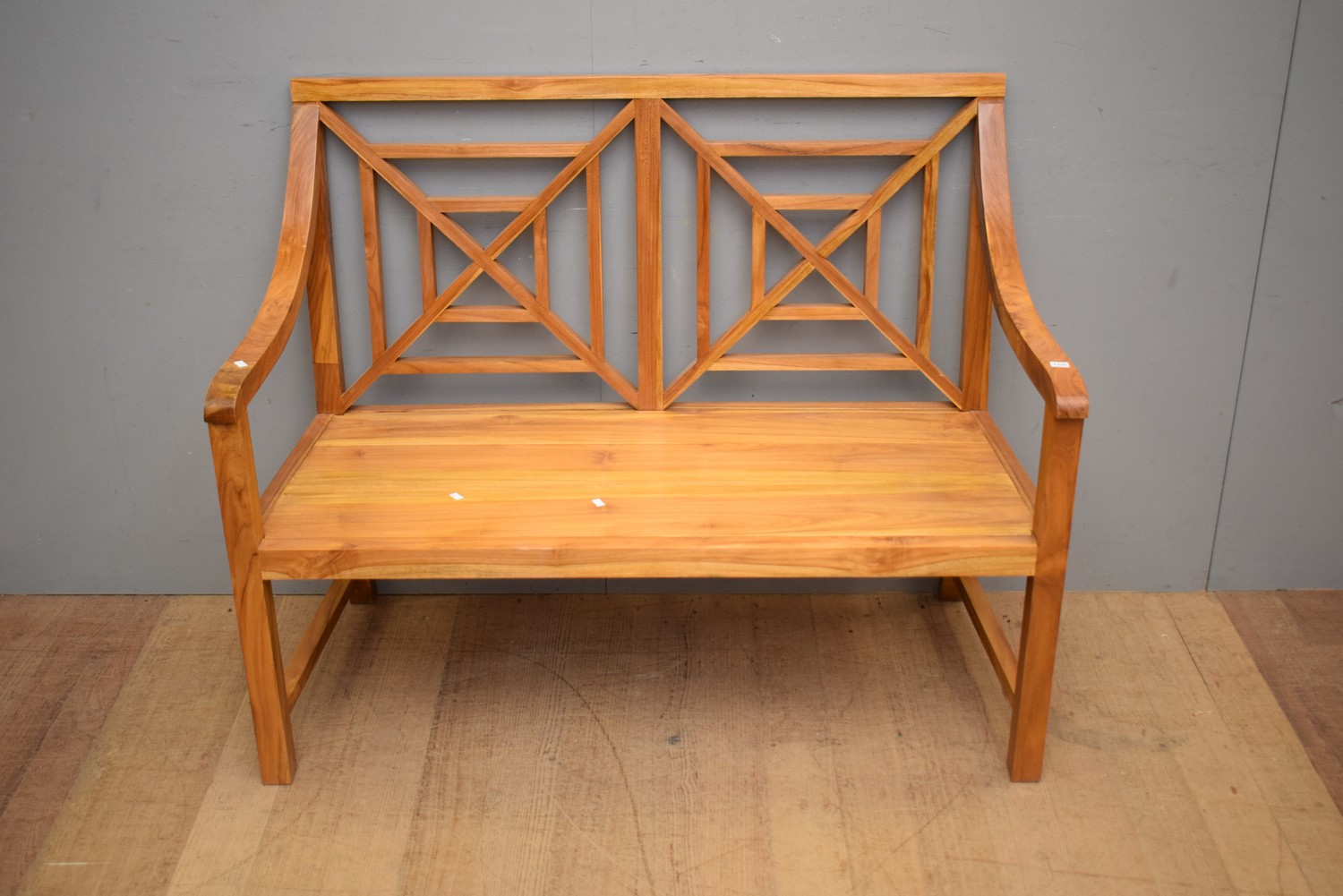A TEAK FRETWORK BENCH SEAT (97H X 120W X 58D CM)