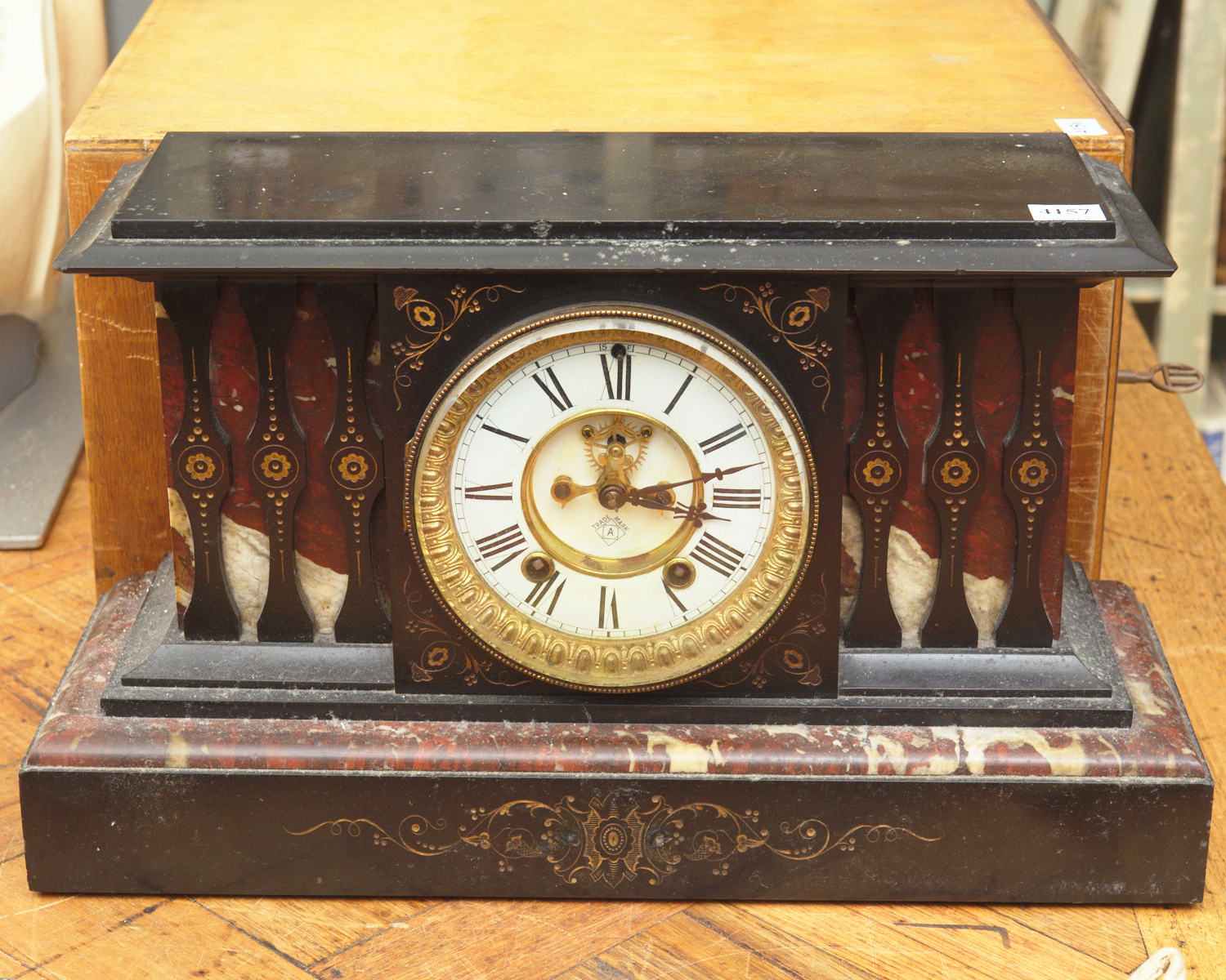 AN ANSONIA MARBLE MANTLE CLOCK WITH KEY