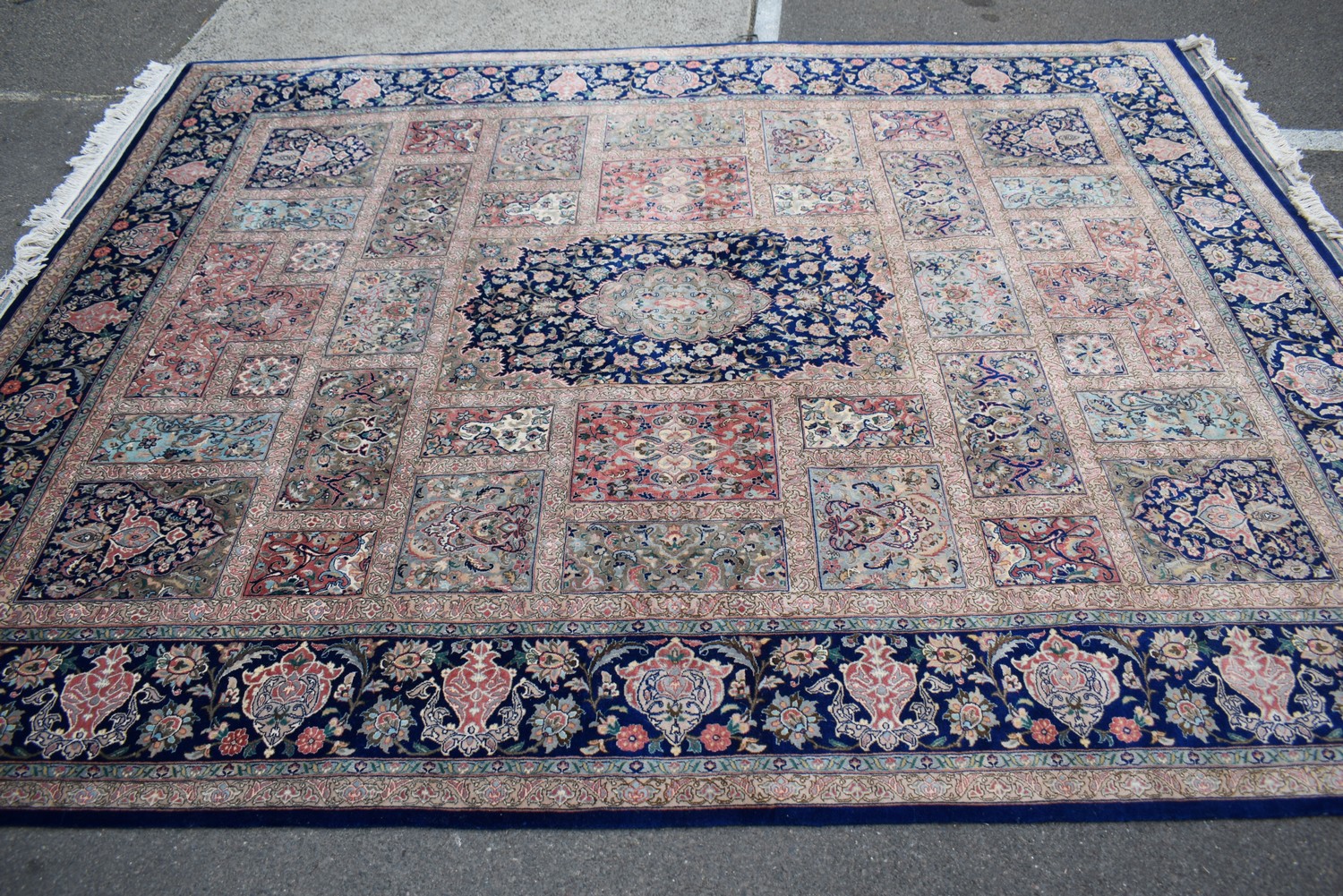 A LARGE MIDDLE EASTERN FLOOR RUG, SIGNED, 310 X 240 CM (A/F)