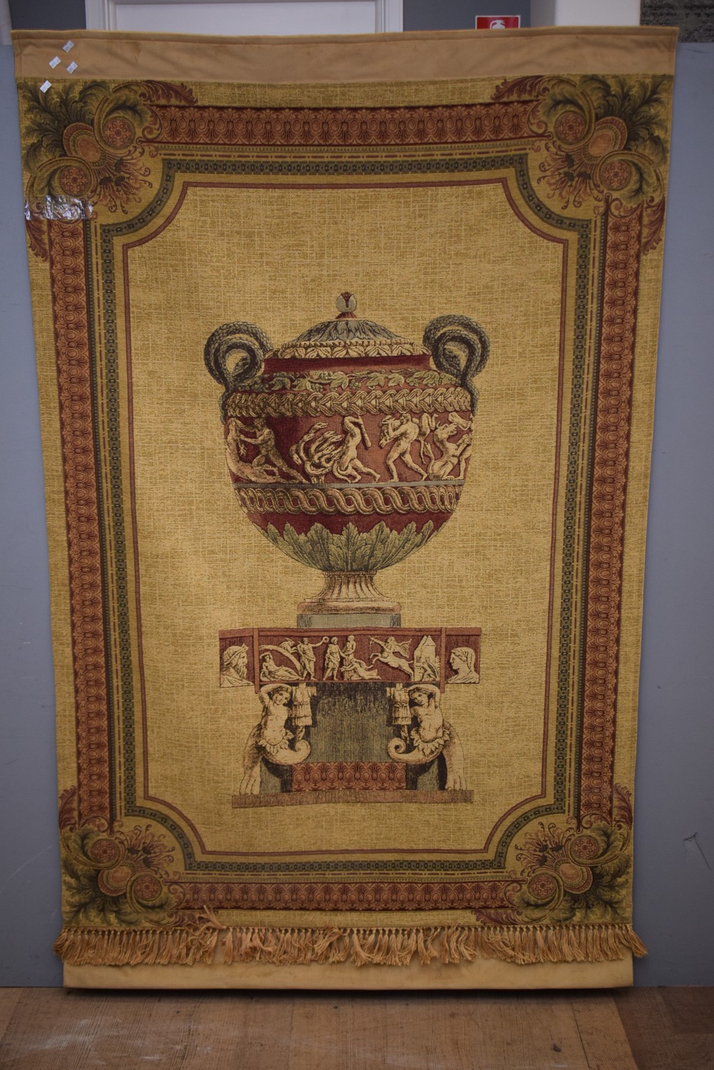 A MACHINE STITCHED WALL SCREEN DEPICTING A GRECIAN URN (127 X 206 CM)