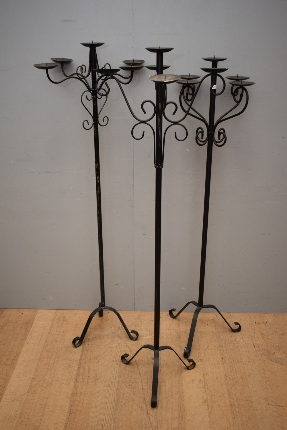 A COLLECTION OF THREE LARGE CANDELABRAS, MISMATCHED (LARGEST 156 CM H)