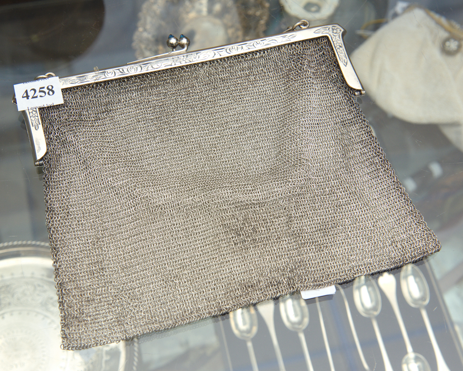 AN 800 CONTINENTAL SILVER MESH PURSE, APPROX 300 GRAMS