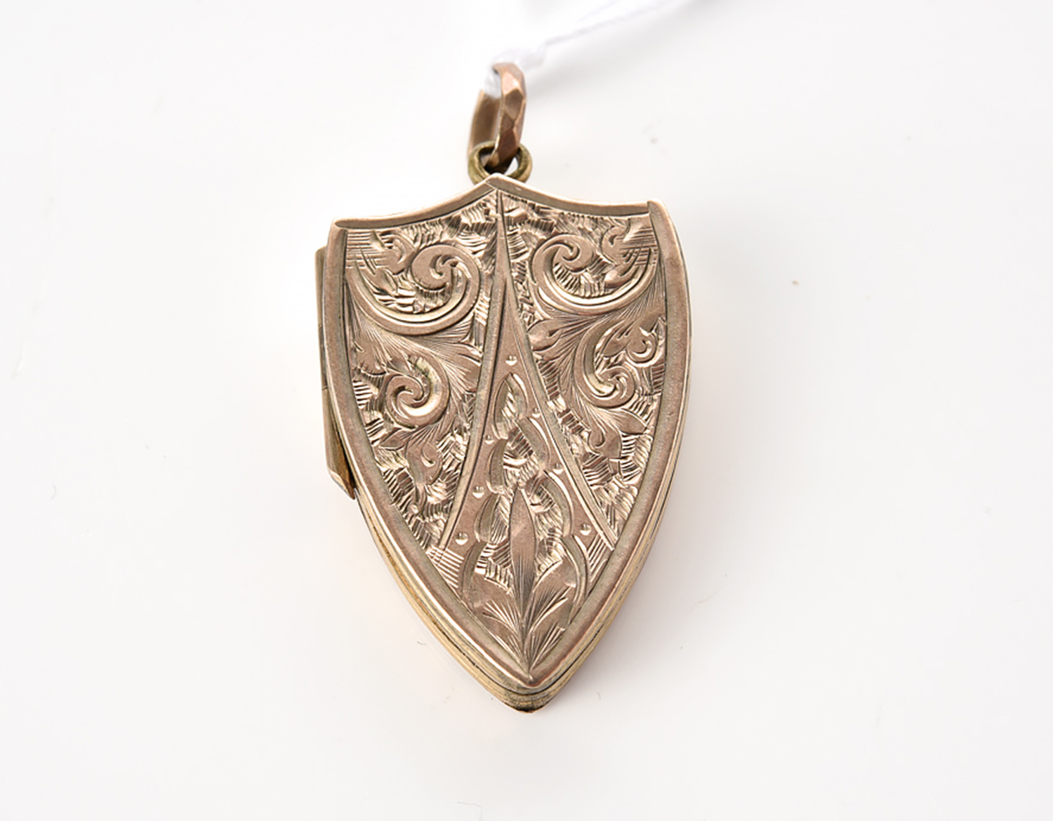 A VICTORIAN GOLD CASED SHIELD LOCKET, TOTAL LENGTH 35MM