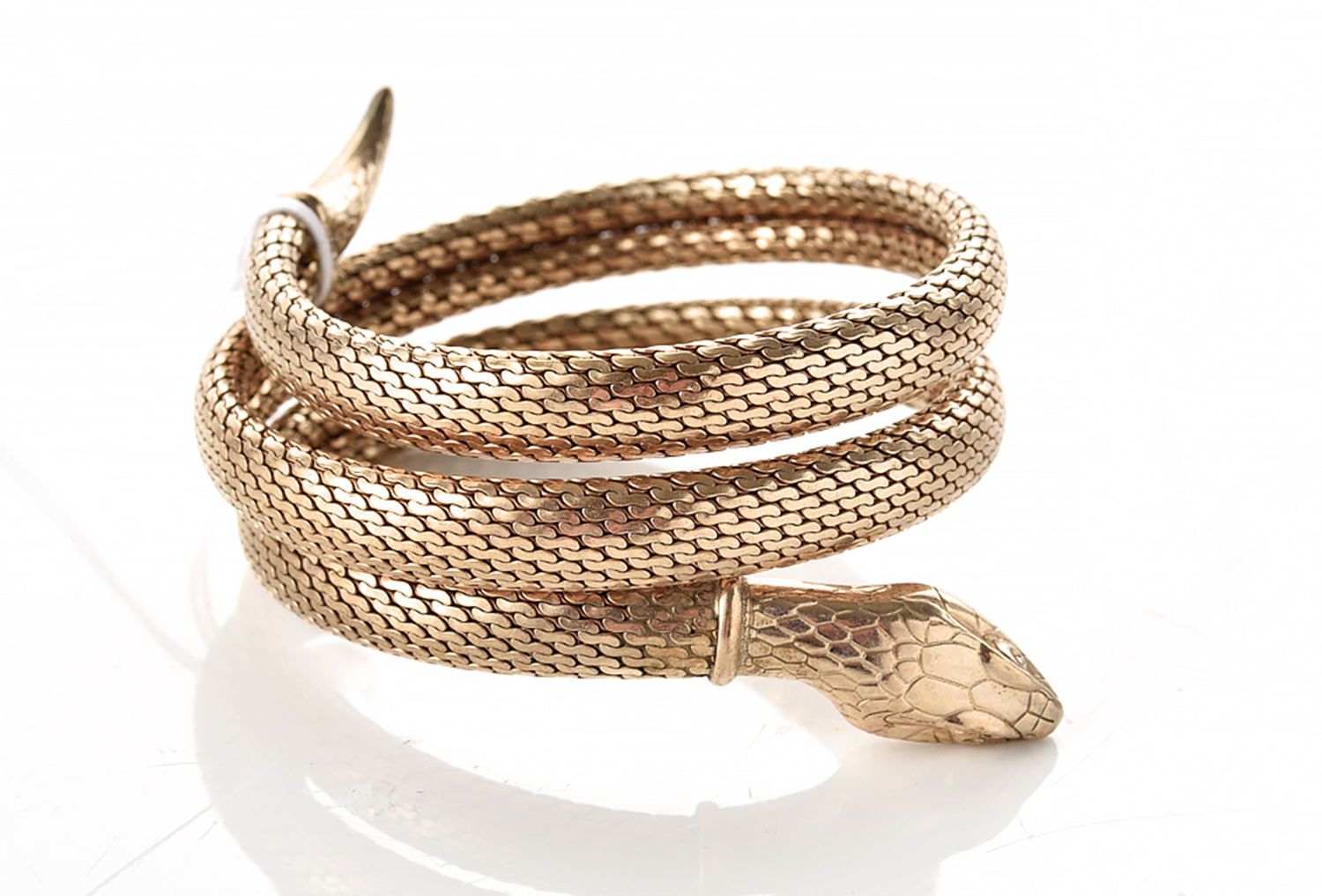 AN ANTIQUE GOLD PLATED SNAKE BRACELET