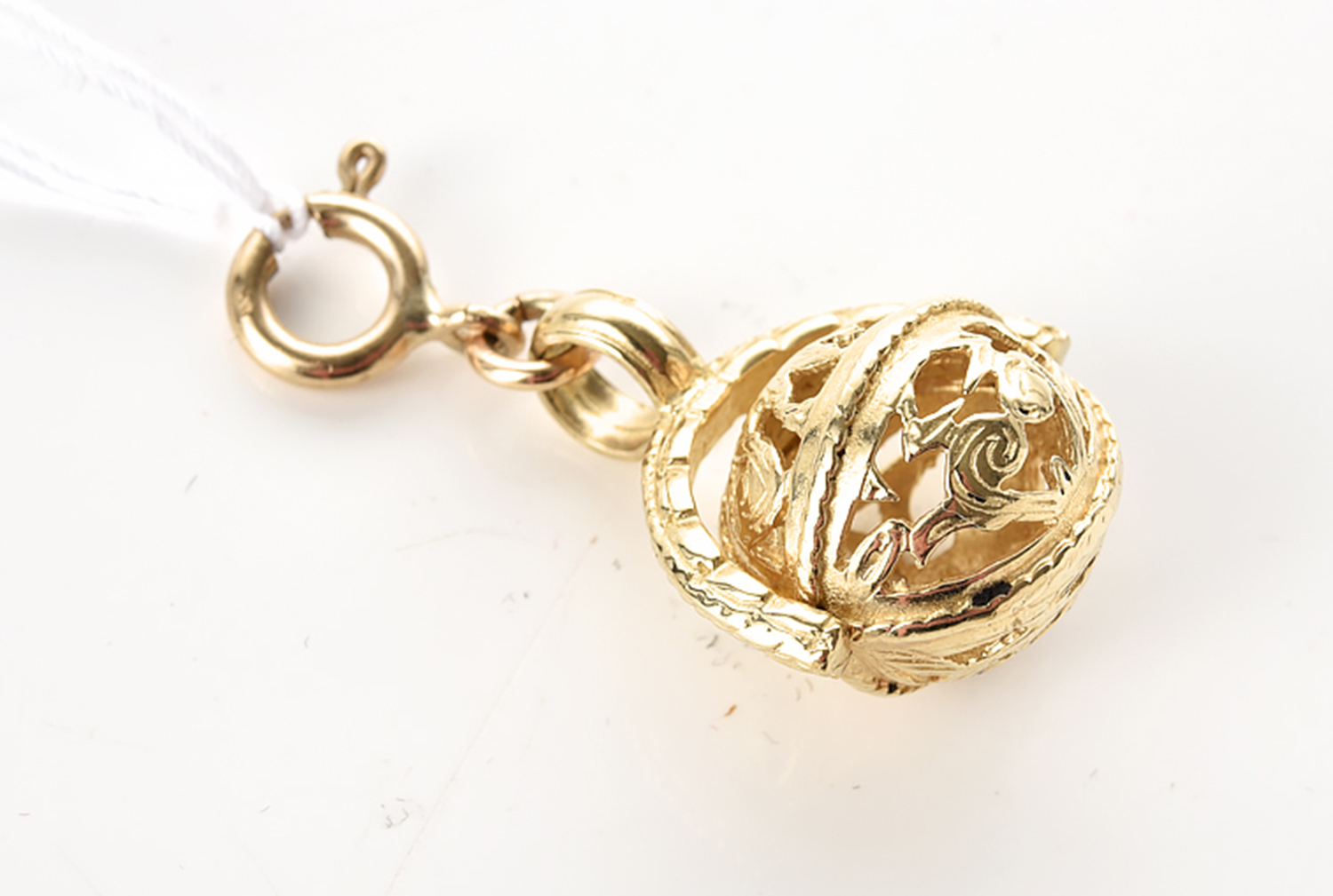 A FILIGREE SPINNING CHARM IN 9CT GOLD, 6.5GMS