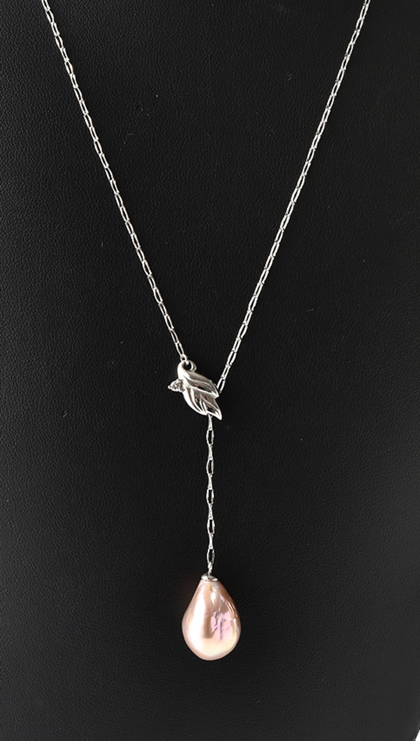 A PEARL DROP PENDANT WITH CHAIN IN 14CT WHITE GOLD