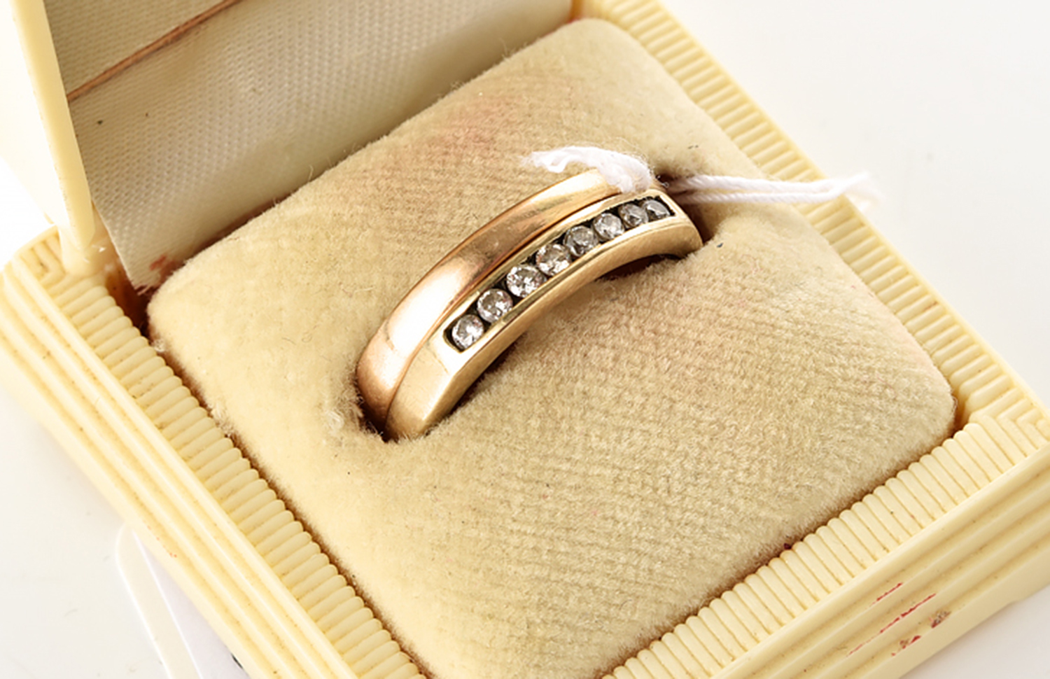 A CHANNEL SET DIAMOND BAND, TOGETHER WITH A WEDDER, BOTH IN 9CT GOLD, RING SIZE M - O, 4.4GMS