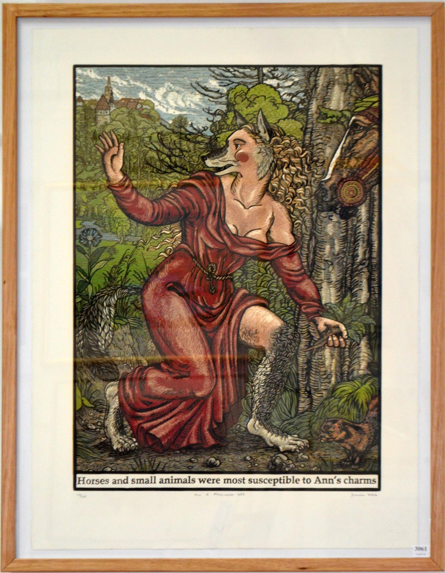 YASMINA CININAS, ANN OF MEREMOSIA 1623, 2002, REDUCTION LINOCUT 30/30, 62 X 45CM, FRAME SIZE: 83 X 65CM, CONDITION: VERY GOOD
