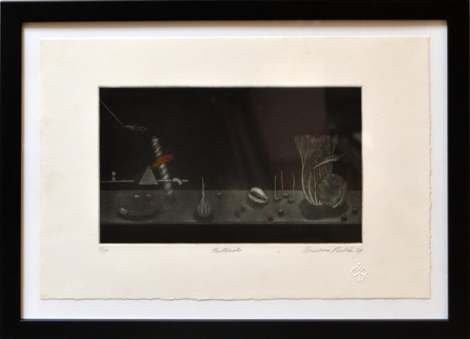 GRAHAM PEEBLES, BILLIARDS 1989, MEZZOTINT 1/40, 15 X 25CM, FRAME SIZE: 33 X 45CM, CONDITION: VERY GOOD