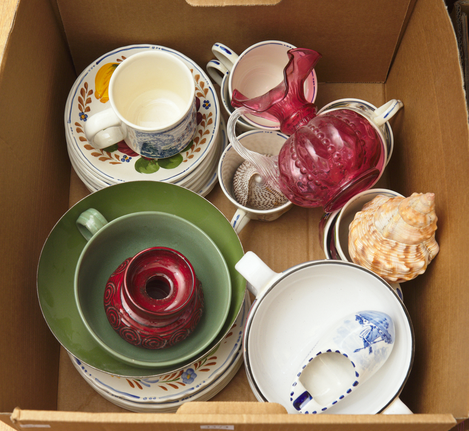 A BOX OF CERAMICS AND VINTAGE HOMEWARES