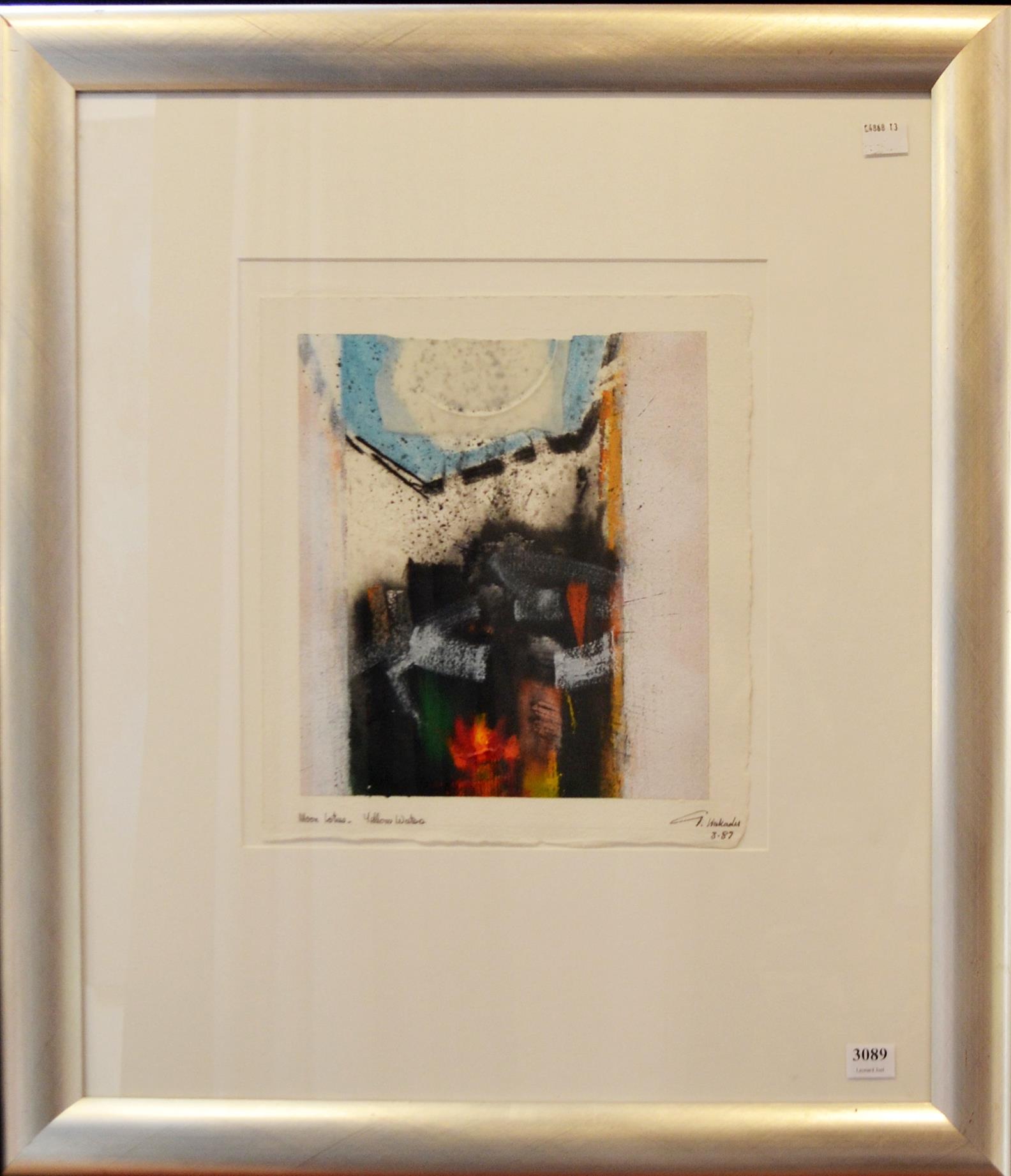 THOMAS GLEGHORN, MOON LOTUS. YELLOW WATERS, OIL AND WAX ON PAPER, 24 X 21CM FRAME SIZE: 61 X 53CM CONDITION: VERY GOOD. LEONARD JOEL DELIVERY SIZE: SMALL