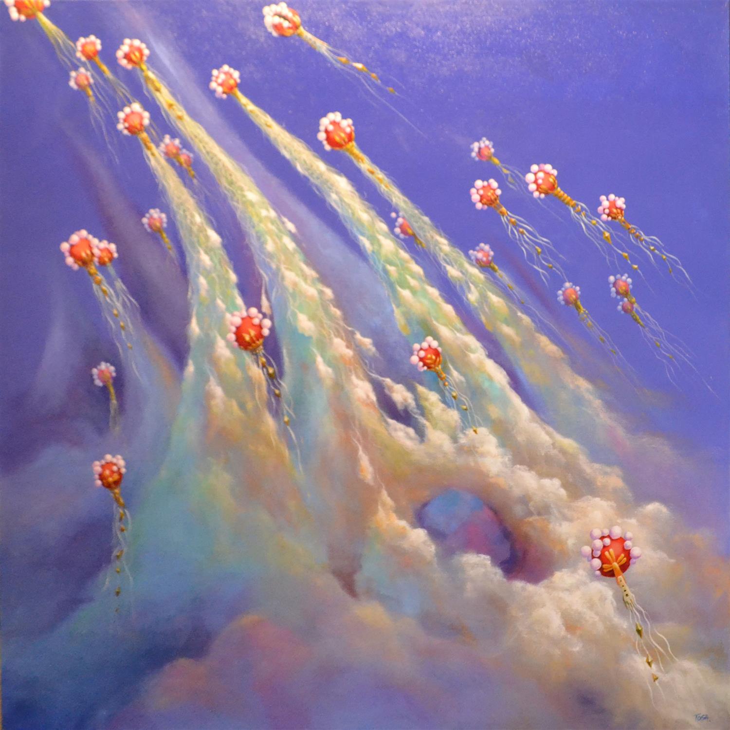 JOHN MCINTOSH, SAGRADA FIGHT, OIL ON LINEN, 152 X 152CM, CONDITION: VERY GOOD NO FAULTS