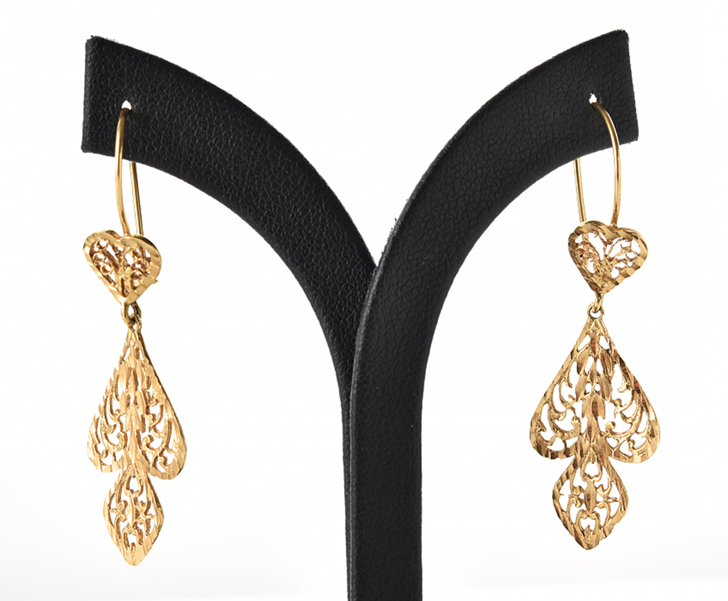 A PAIR OF DROP EARRINGS IN HIGH CARAT GOLD, 3.5GMS