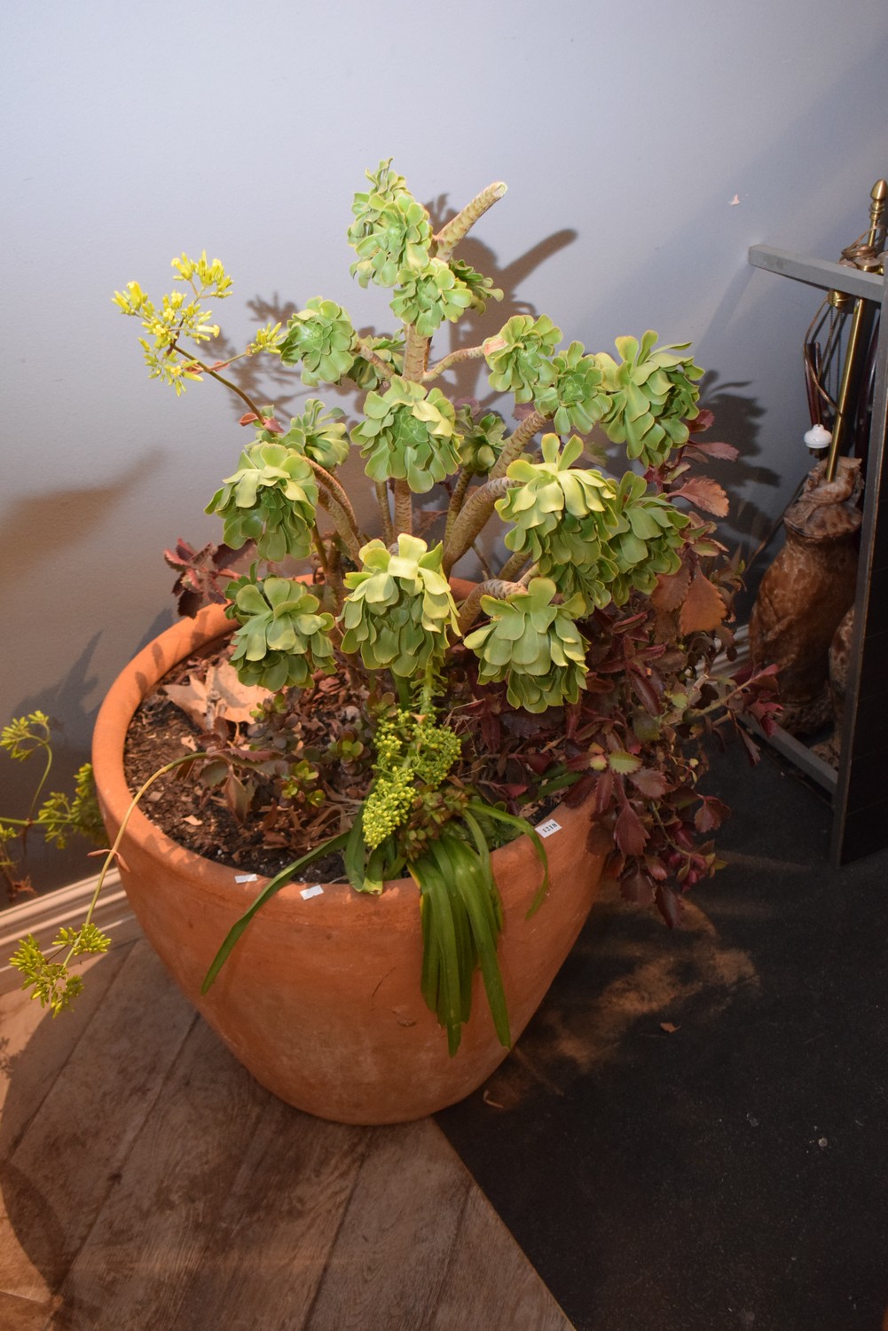 A VERY LARGE TERRACOTTA POT WITH SUCCULENTS (PLEASE NOTE THIS HEAVY ITEM MUST BE REMOVED BY CLIENTS OR CARRIERS AT THE CUSTOMERS EXPENSE. LEONARD JOEL STAFF CANNOT ASSIST CARRYING THIS ITEM) (POT 57H X 30D)