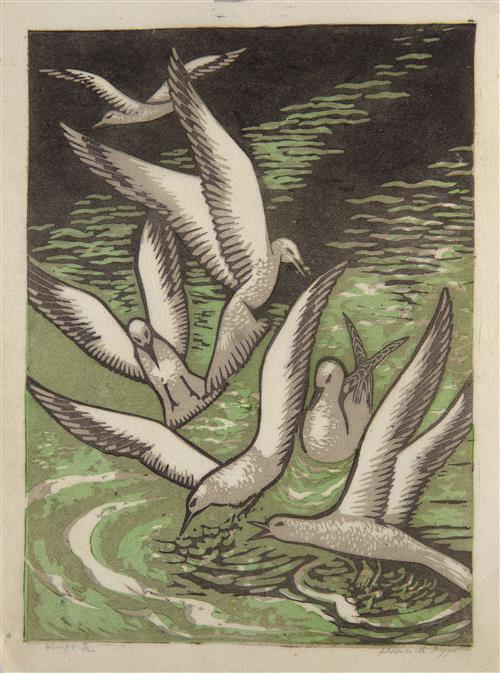This work is in very good condition with some creases to the thin rice paper. There are some printing imperfections seen in the margin. This work is unframed with a sheet size of 33 x 25.5cm.