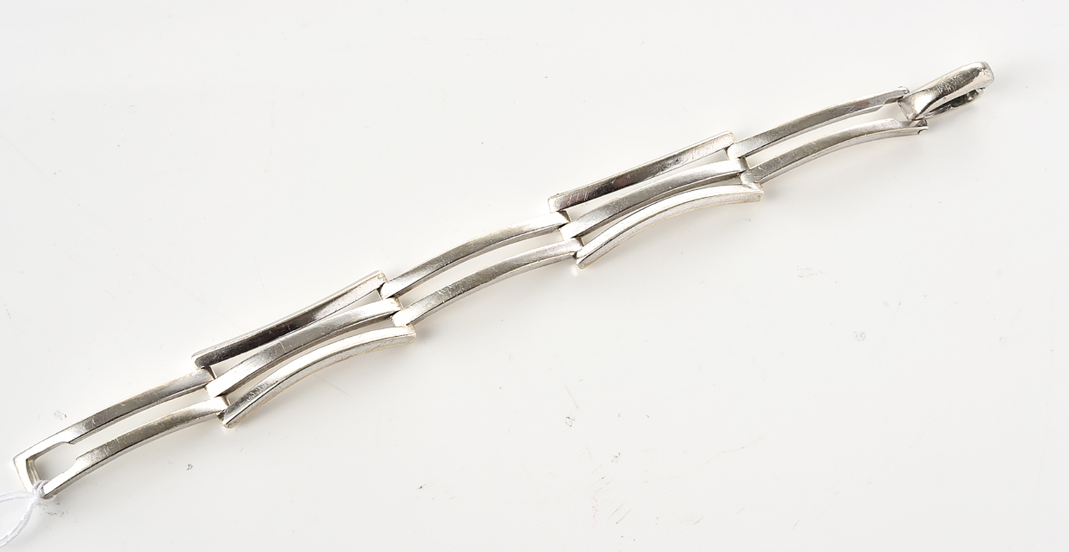 A 1970s DESIGNER BRACELET IN STERLING SILVER, TOTAL LENGTH 190MM