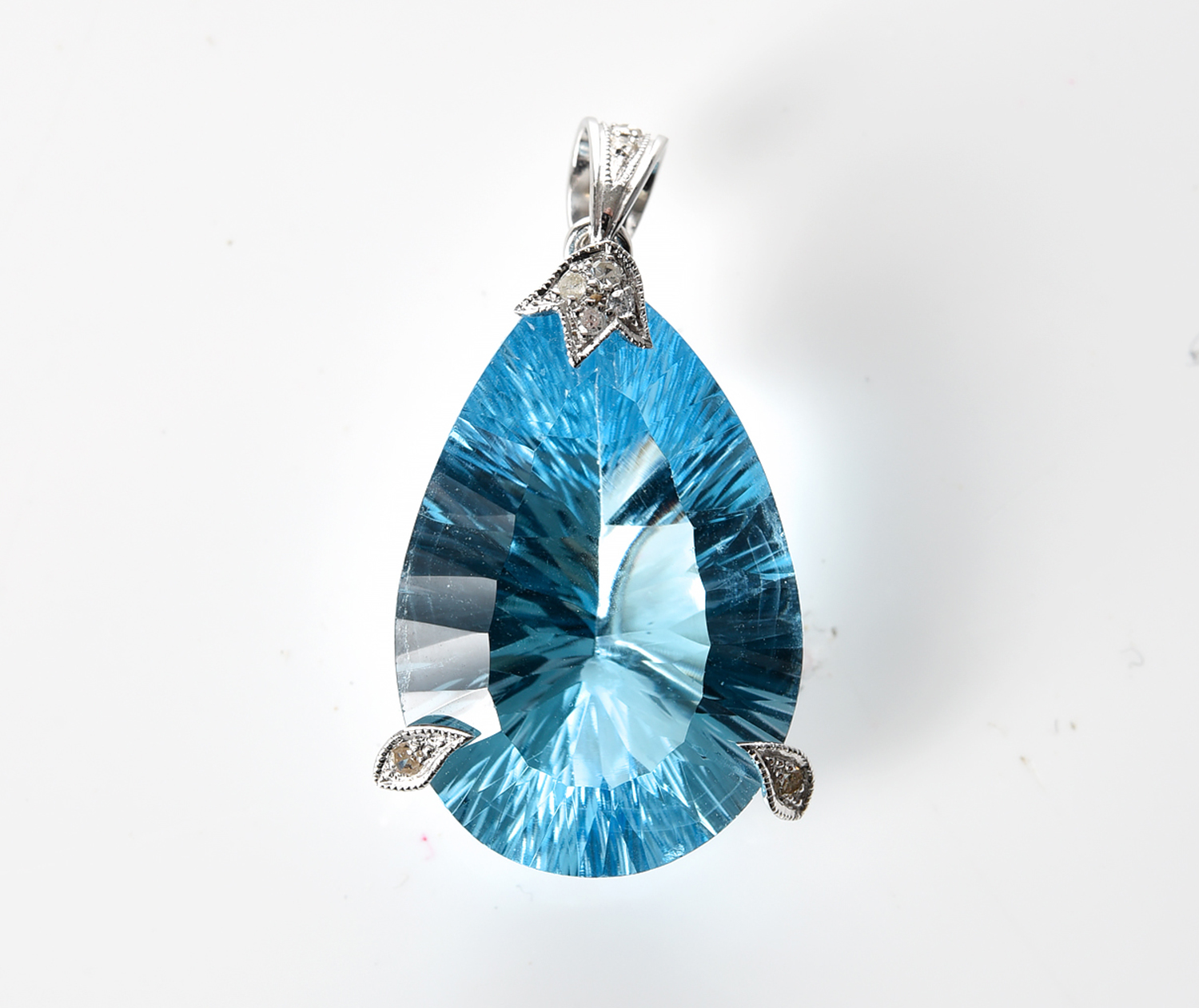 A MORGANITE AND DIAMOND PENDANT IN 18CT WHITE GOLD, FEATURING A PEAR CUT MORGANITE OF 117.37CTS, TO A BELCHER LINK CHAIN, WITH ACCOM...