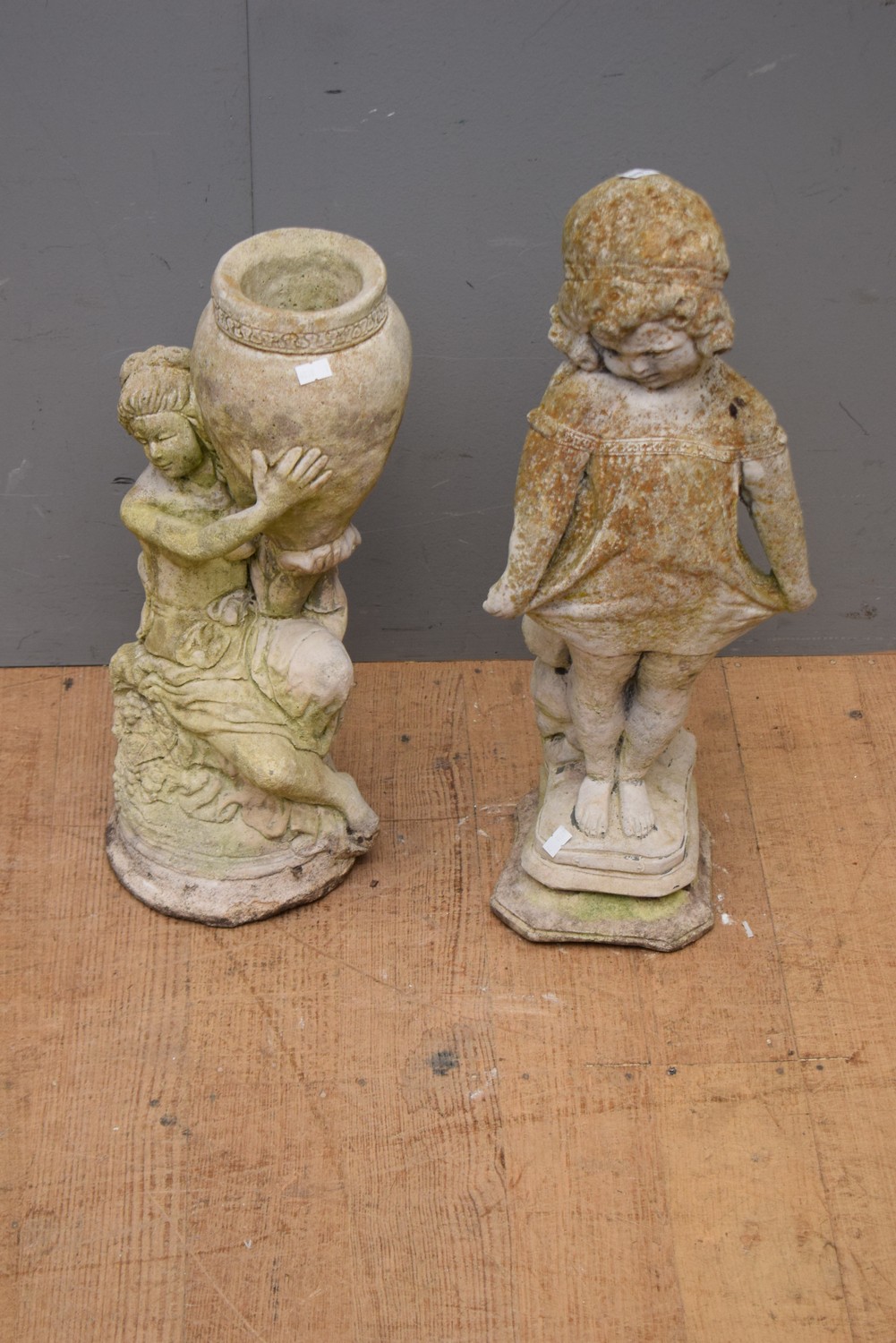 TWO CONCRETE GARDEN FIGURES (LARGEST 58 CM H)