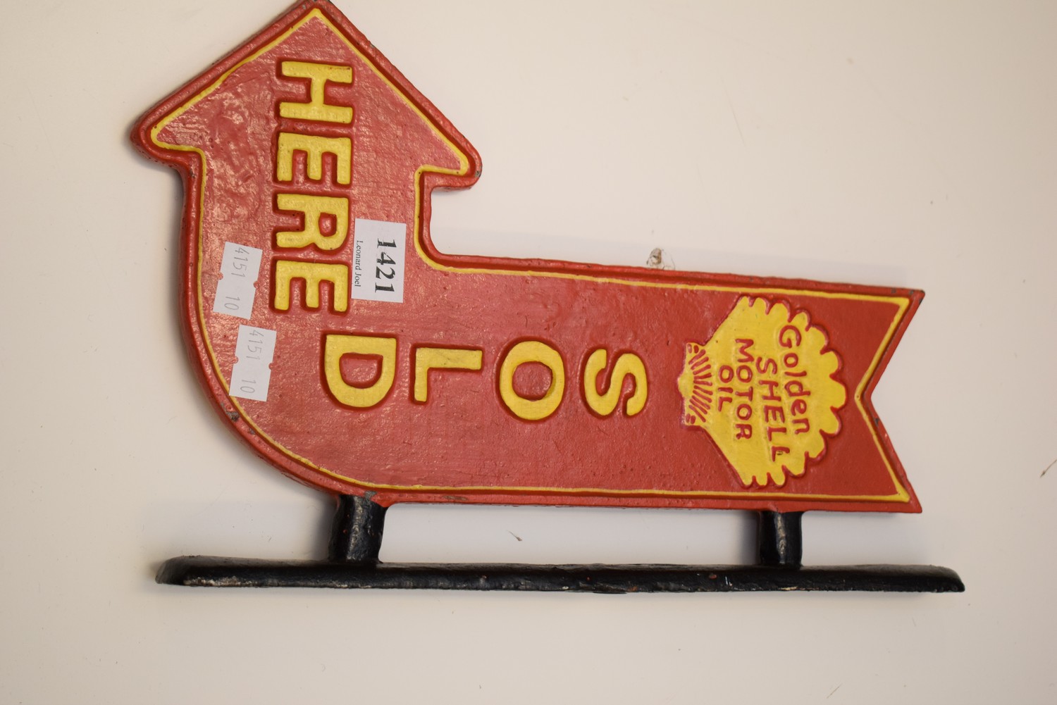 A 'SHELL SOLD HERE' WALL MOUNTED SIGN (28 CM H)