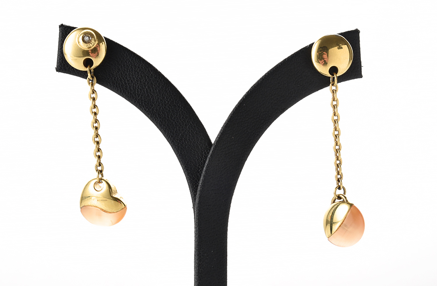 A PAIR OF CAT'S EYE AND DIAMOND SET DROP EARRINGS IN SILVER GILT, SIGNED MORELLATO, TO POST AND BUTTERFLY FITTING, TOTAL LENGTH 45MM