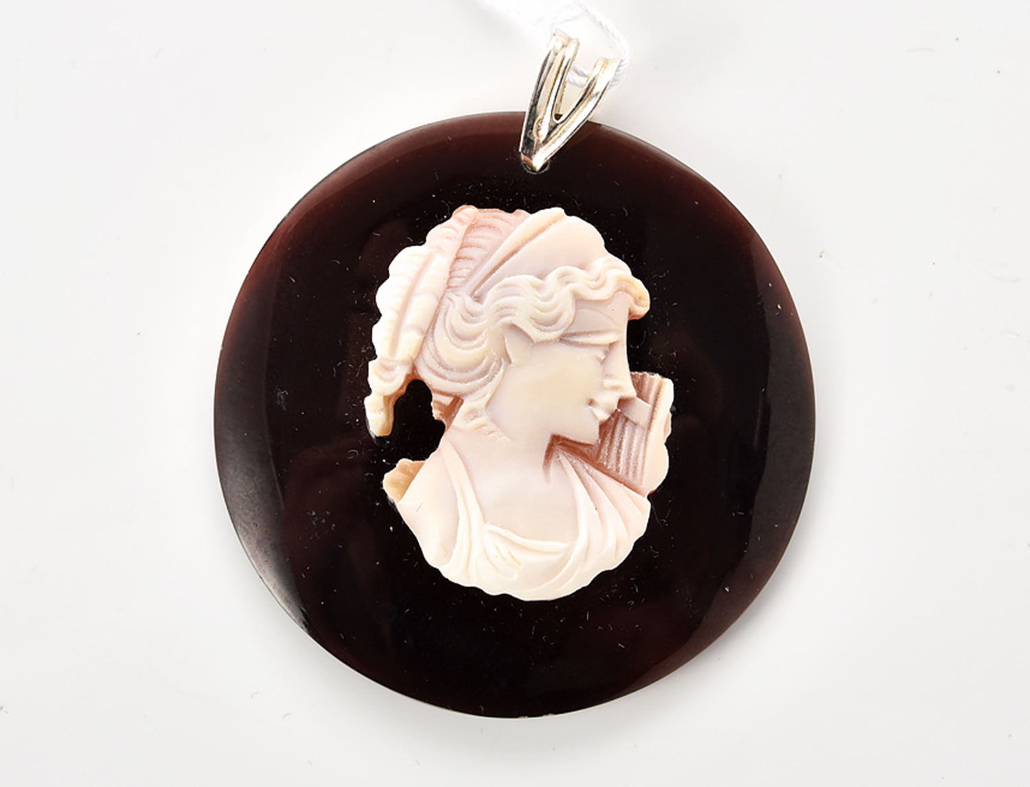 A MODERN ITALIAN CAMEO PENDANT BY DONADIO, DIAMETER OF THE PENDANT 40MM, BOXED