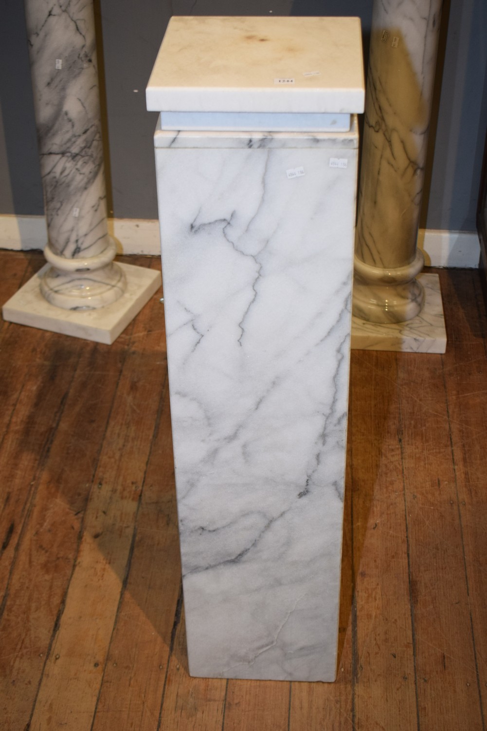 A RECTANGULAR MARBLE PLINTH IN TWO PARTS (PLEASE NOTE THIS HEAVY ITEM MUST BE REMOVED BY CLIENTS OR CARRIERS AT THE CUSTOMERS EXPENSE. LEONARD JOEL STAFF CANNOT ASSIST CARRYING THIS ITEM) (106H X 26W X 26D CM) (A/F)