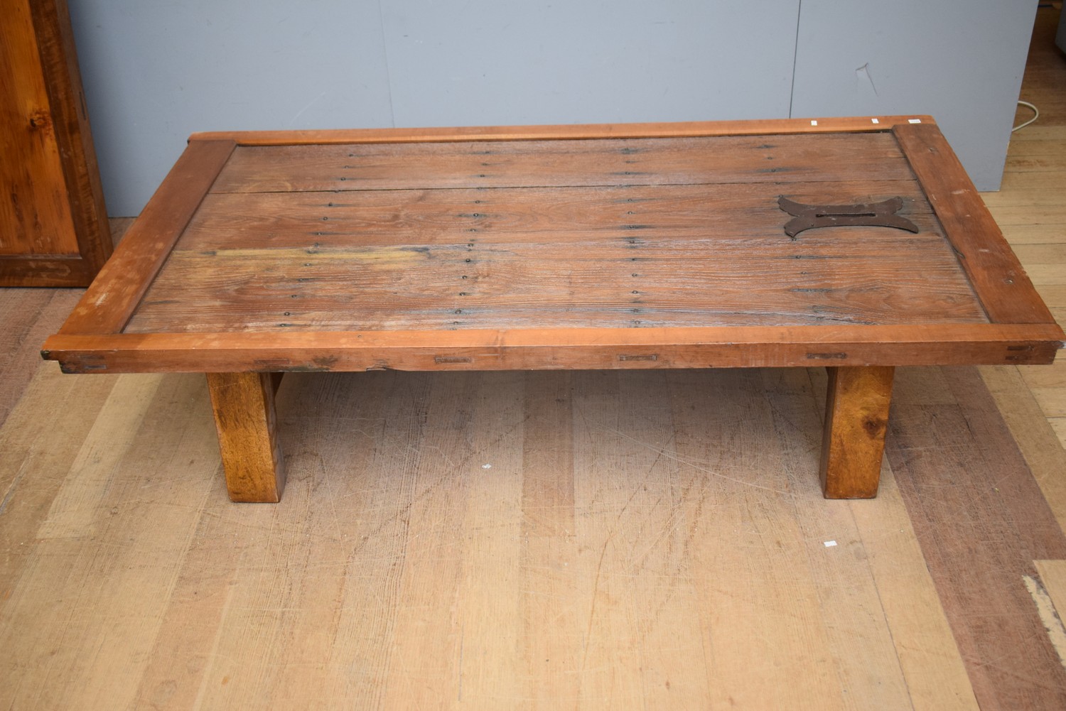 A RUSTIC TABLE MADE FROM A DOOR (A/F) (IN TWO PARTS) (43H X 179W X 96D CM)