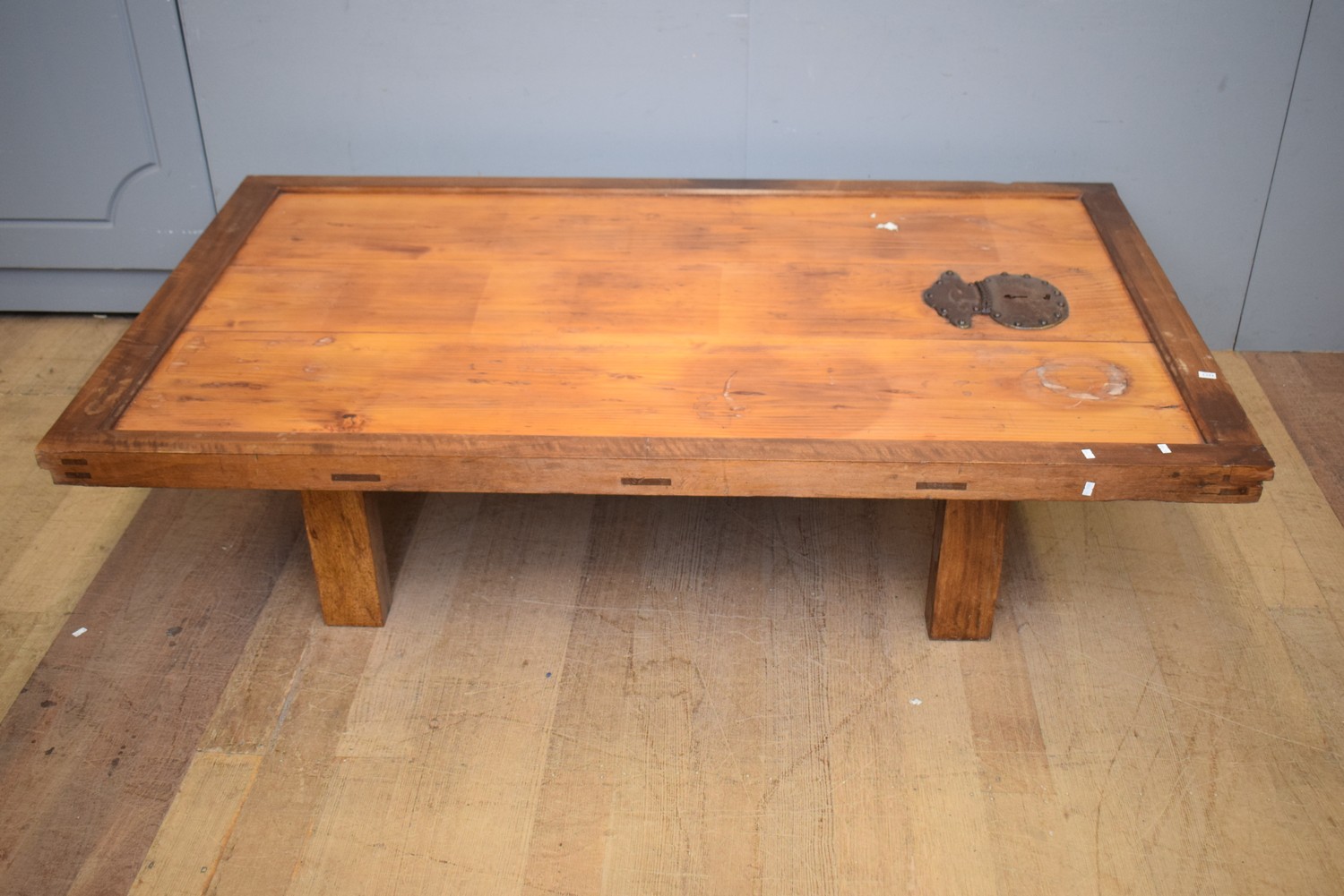 A RUSTIC TABLE MADE FROM A DOOR (A/F) (44H X 179W X 107D CM)