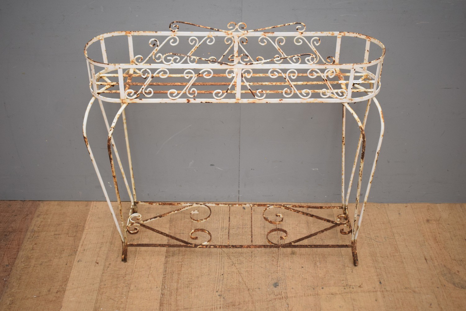 A WROUGHT IRON PLANT STAND (80H X 93W X 40D CM)