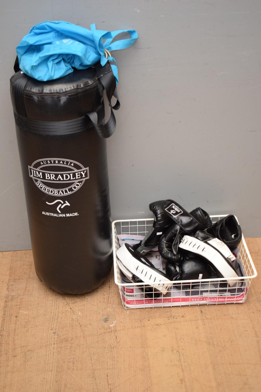 A BOXING BAG AND GLOVES (BAG 86H X 28D CM)