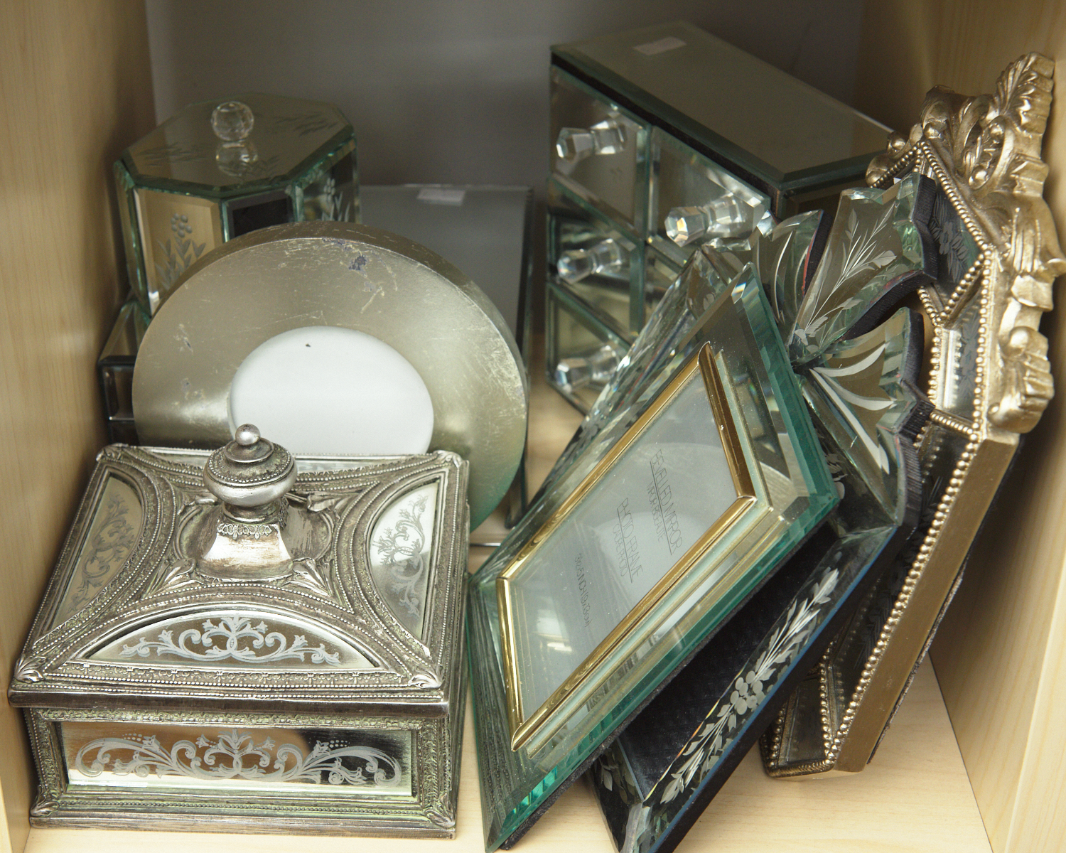 A COLLECTION OF MIRRORED ACCESSORIES INCLUDING JEWELLERY BOXES AND PICTURE FRAMES